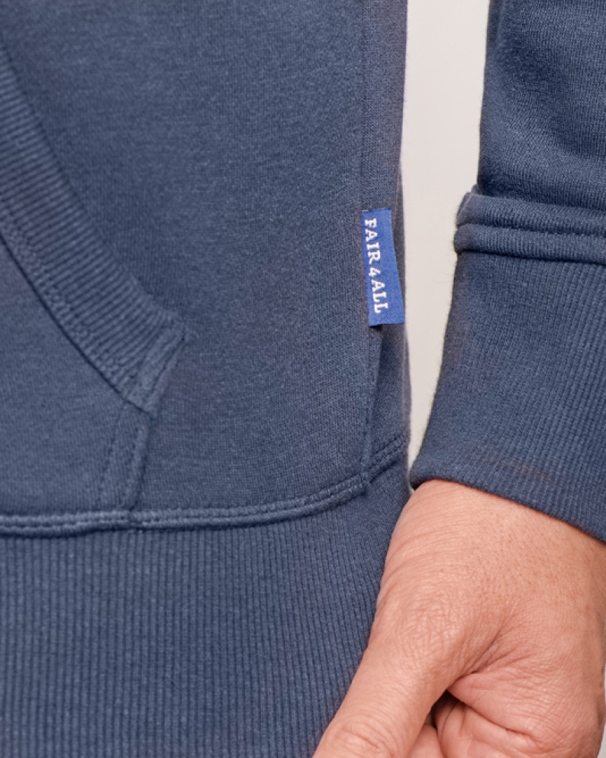 Gumírozott szegély az ujjvégeken, a zsebeken és a pulóver alján