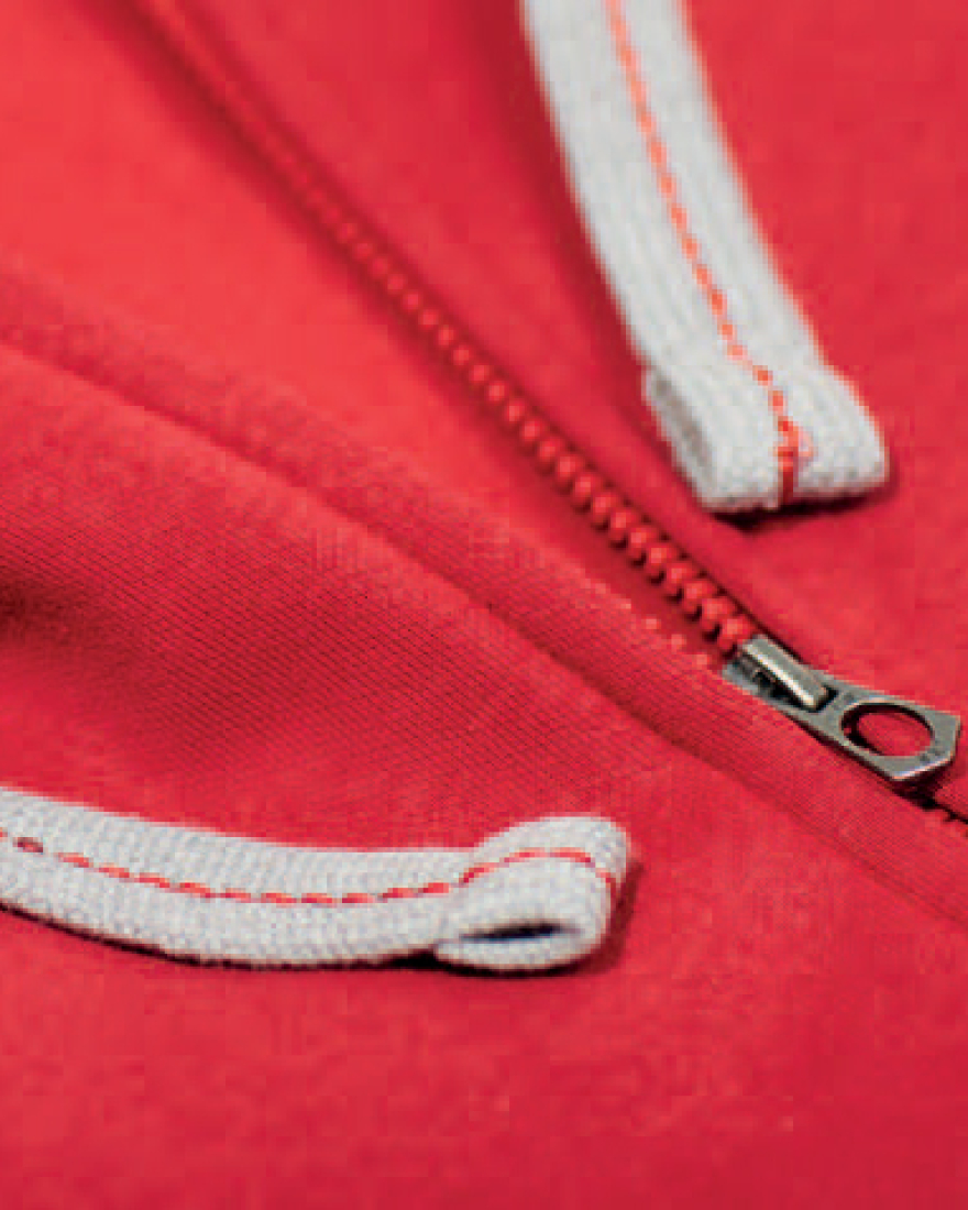 Gumírozott szegély az ujjvégeken, a zsebeken és a pulóver alján